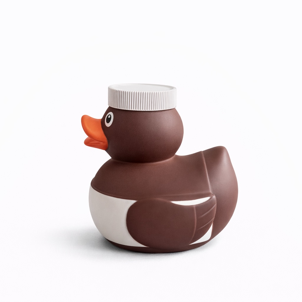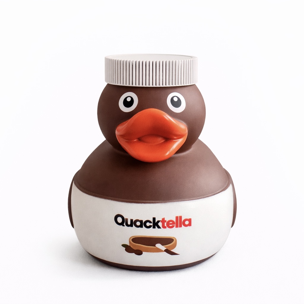 Questa simpatica paperella di gomma ha l’aspetto di un iconico barattolo di crema spalmabile al cacao e nocciole. Con il suo corpo marrone e il tappo bianco, sembra appena uscita dalla dispensa di un goloso! Perfetta per chi ama dolcezza e originalità!